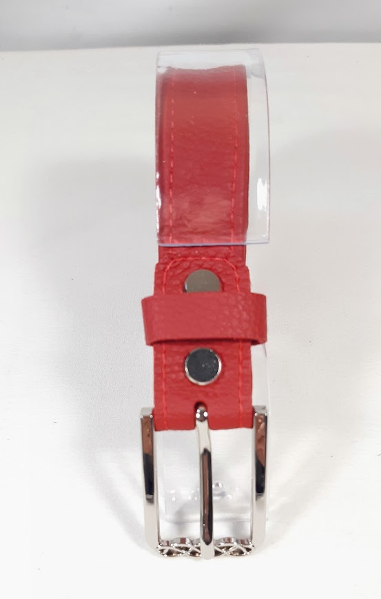 Ceinture pour Elle, en cuir rouge et boucle coloris argent vieilli.