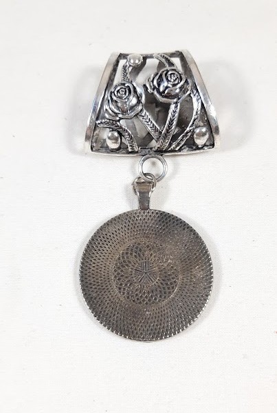 Bijou de foulard: métal couleur argent vieilli.