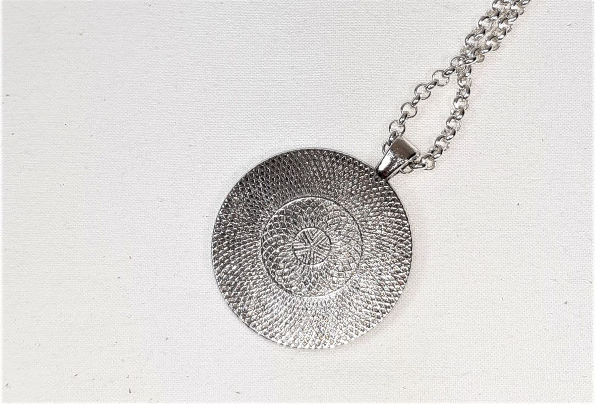 Pendentif en laiton et cuir d'agneau lisse, tannage minéral,noir, illuminé par un cristal de Swaroski.